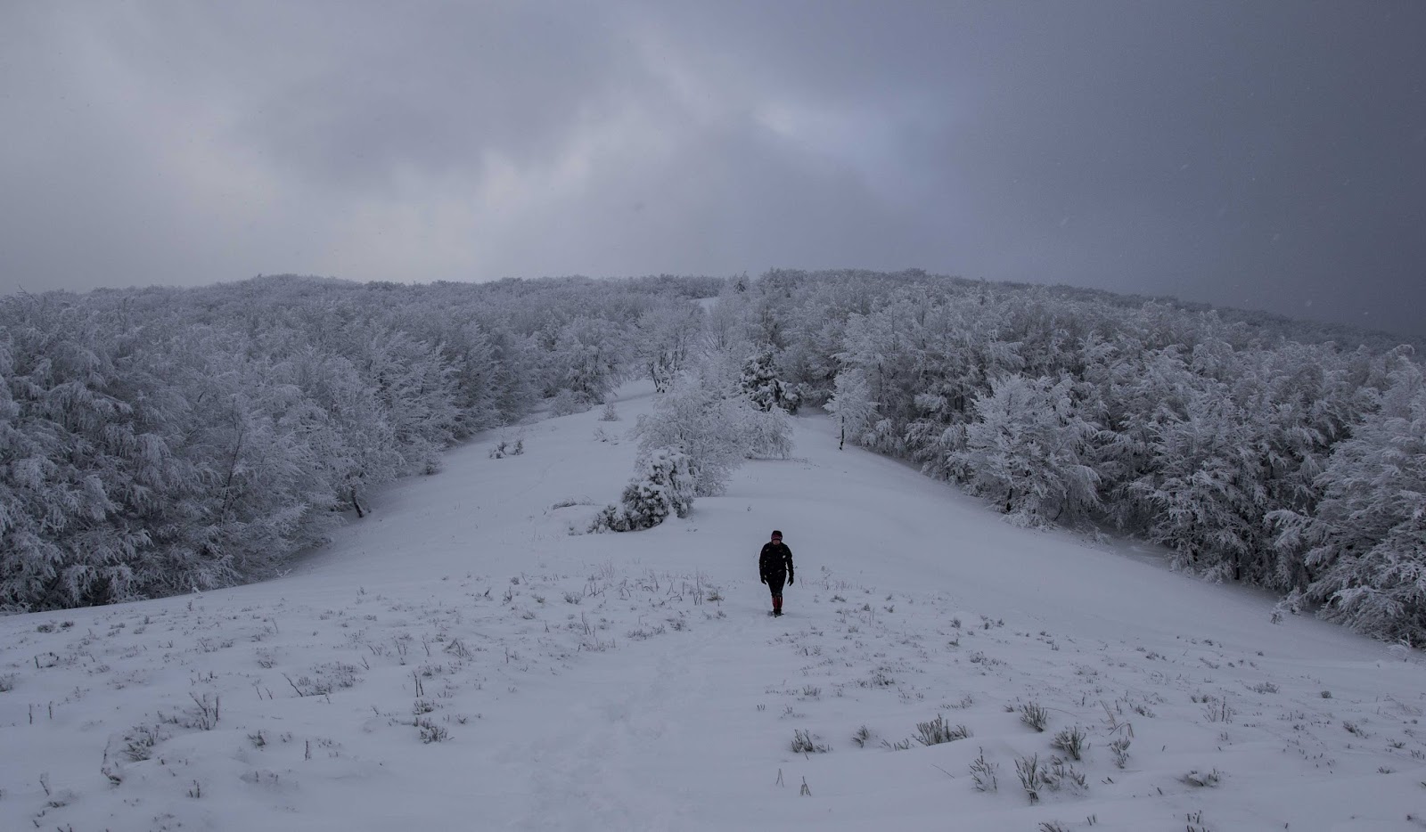 Po około 2 godzinach marszu (gdzieś na wysokości 900 m n.p.m.) musimy już przecierać szlak, bo nie widać żadnych śladów i śniegu jest naprawdę dużo...